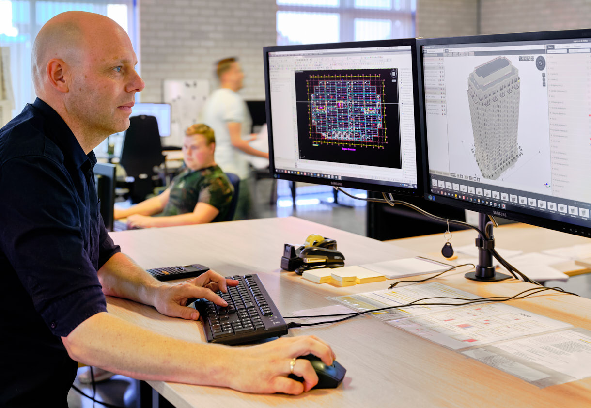 Het mooie van mijn vakgebied is dat geen enkel gebouw hetzelfde is, qua vorm en wapening. De hoeveelheid aan expertise dat bij zo’n project komt kijken is indrukwekkend. Op onze afdeling engineering, tekenen wij als breedplaat-tekenaars de wapening en de beton constructeurs berekenen de benodigde wapening van de vloeren. Zodra wij klaar zijn kan het productieproces van start gaan, waar we beschikken over kundige ervaren medewerkers en hightech machines. Daarnaast staan we in de markt en bij onze klanten bekend om onze leverbetrouwbaarheid en flexibiliteit.