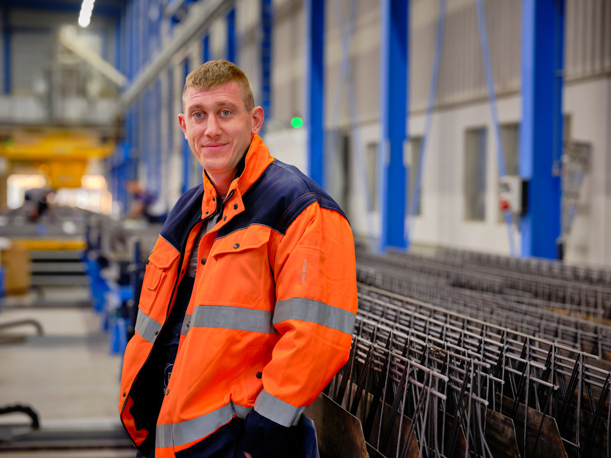 Ik ben via het uitzendbureau bij Geelen Beton in Wanssum gestart waar ik 1 jaar als machine bediende heb gewerkt in de wapeningsstraat. Ik ben een echte aanpakker, een doener en heb dat jaar in Wanssum gebruikt om zo veel mogelijk te leren in de praktijk. Ik had al ervaring in de bouw als lasser, wat me heeft geholpen het werk snel op te pakken en dat werd ook gezien. Ik mocht een vervolgstap maken naar de vestiging in Posterholt waar ik nu als voorman bij de staalgroep en de nettenmachine werk. Een mooie combinatie van operationeel met het vak bezig zijn, leidinggeven en opleiden van nieuwe mensen, daarnaast zorg ik voor reparatiewerkzaamheden, als ook het oplossen van eventuele storingen zodat mijn collega’s altijd op tijd de wapening tot hun beschikking hebben om de breedplaatvloeren te kunnen produceren. Samen zijn we één team.